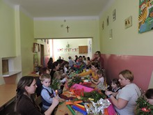 W dniu 19 marca 2018 r. w Szkole Podstawowej w Leśniowicach najmłodsza grupa społeczności szkolnej wraz z rodzicami i babciami wzięła udział w warsztatach plastycznych nawiązujących do tradycji i zwyczajów wielkanocnych ,,Palma i pisanka”.