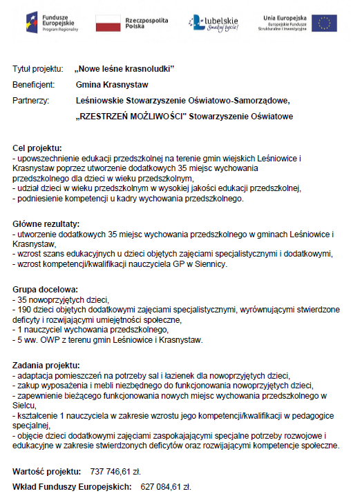 Realizacja projektu pn. "Nowe leśne krasnoludki"
