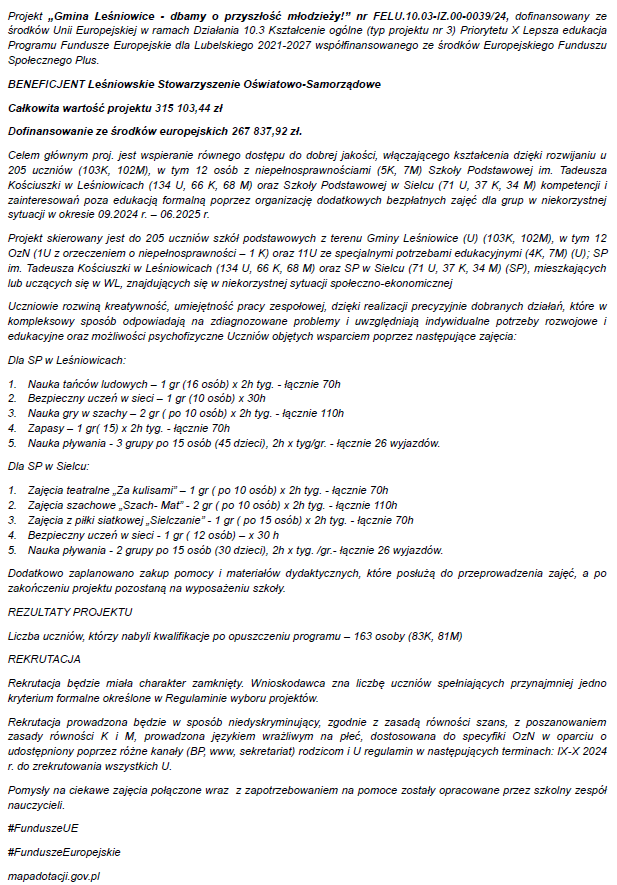 Gmina Leśniowice – Dbamy o przyszłość młodzieży!