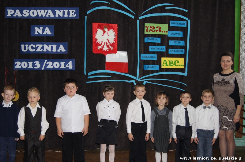 W dniu 23 października 2013 r. w Szkole Podstawowej w Leśniowicach odbyło się ślubowanie klasy pierwszej i pasowanie na ucznia. |