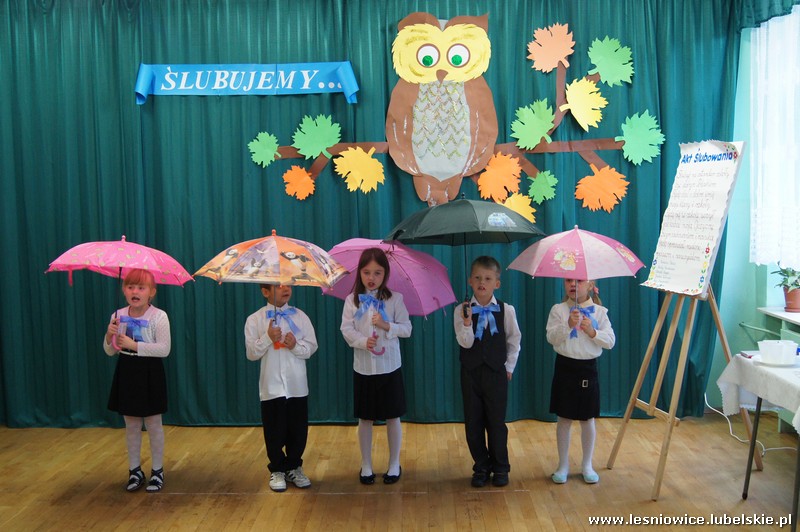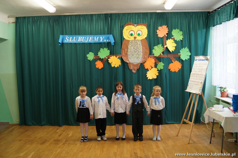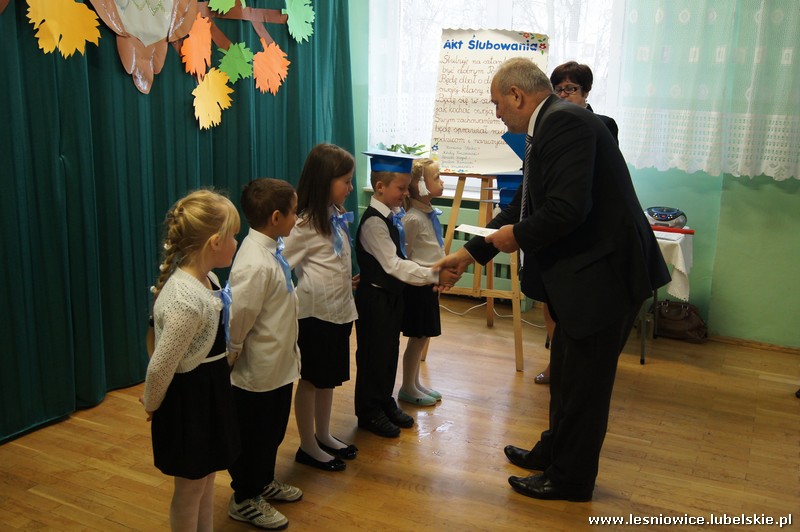 Uroczystość rozpoczęła się częścią artystyczną w wykonaniu dzieci z klasy pierwszej, którą przygotowały pod opieką wychowawczyni Pani Małgorzaty Kraczkowskiej. Następnie pierwszaki przeszły test na ucznia oraz złożyły uroczyste ślubowanie na sztandar szkoły, przyrzekając sumiennie wykonywać swoje obowiązki i dbać o dobre imię szkoły.