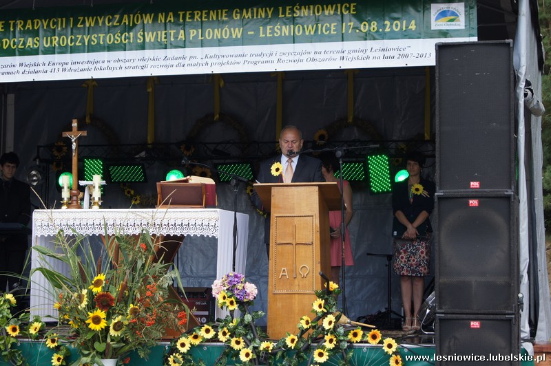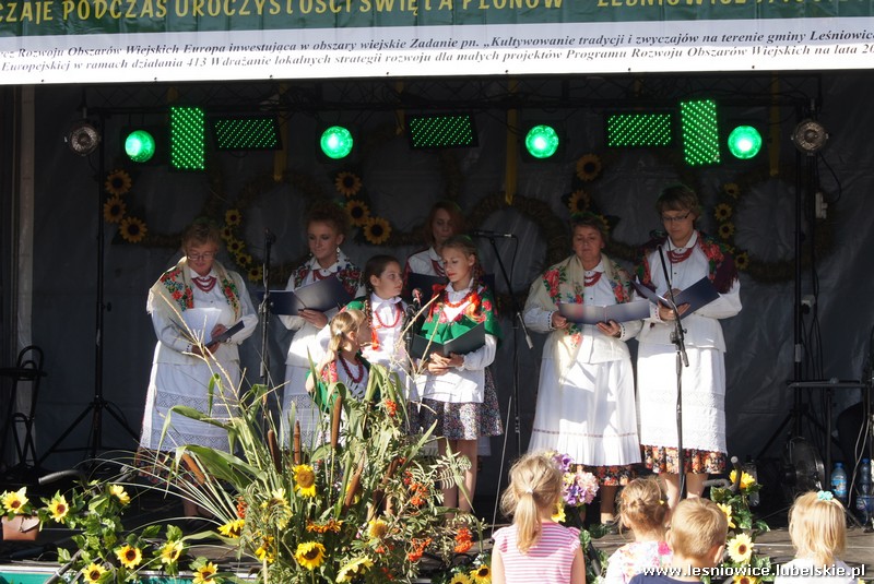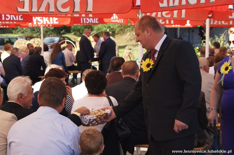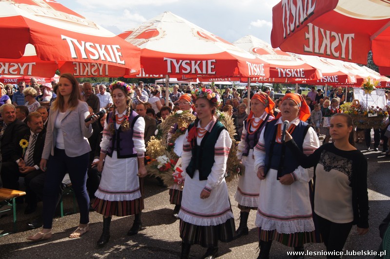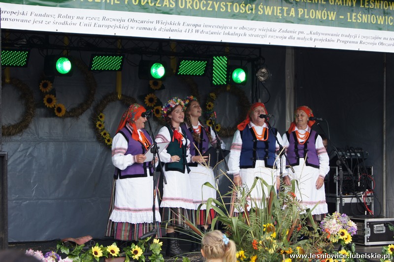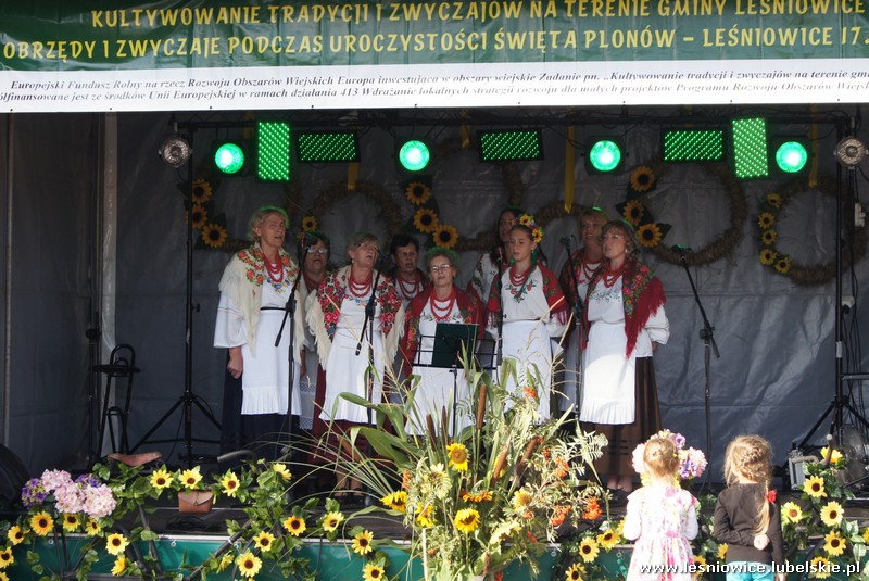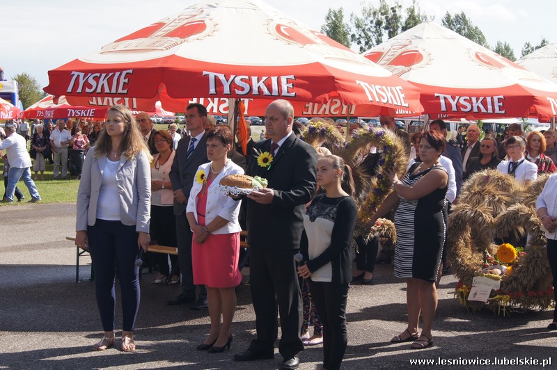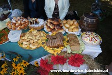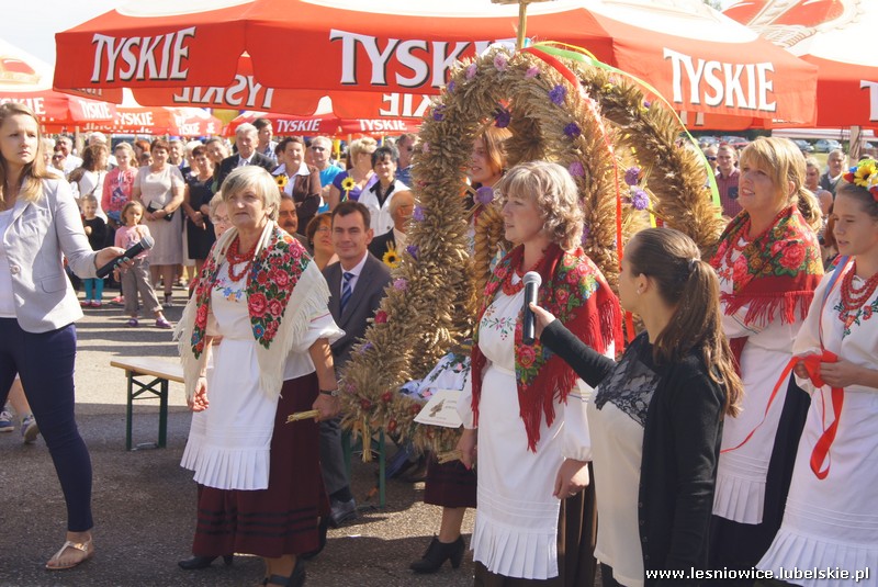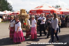 W dniu 17 sierpnia 2014 r. na stadionie sportowym w Leśniowicach odbyła się impreza pn. „Kultywowanie tradycji i zwyczajów na terenie Gminy Leśniowice - Obrzędy i zwyczaje podczas uroczystości Święta Plonów”. Organizatorem imprezy było Leśniowskie Stowarzyszenie Oświatowo – Samorządowe. Zadanie współfinansowane ze środków Unii Europejskiej w ramach działania 413 Wdrażanie lokalnych strategii rozwoju dla małych projektów Programu Rozwoju Obszarów Wiejskich na lata 2007-2013. Dożynki to czas dziękczynienia Stwórcy za zebrane plony. W tym dniu świętuje się zakończenie żniw oraz przypomina o trudnej pracy rolnika, dzięki której codziennie na stoły w naszych domach trafia polski chleb. Jest to jeden z najważniejszych i najpiękniejszych dni w roku każdego rolnika. To radość z uzyskanych plonów i odpoczynek po ciężkiej pracy. Dożynki Gminne tradycyjnie rozpoczęła swoim występem Młodzieżowa Orkiestra Dęta z Leśniowic. Następnie głos zabrała Pani Agnieszka Raczyńska Prezes Leśniowskiego Stowarzyszenia Oświatowo - Samorządowego, która poinformowała wszystkich o pozyskanych środkach na organizację imprezy i podziękowała gospodarzowi dożynek, Panu Wiesławowi Radzięciakowi Wójtowi Gminy Leśniowice, który powitał wszystkich przybyłych gości i wygłosił okolicznościowe przemówienie mówiąc: „W imieniu całej społeczności gminnej dziękuję Wam drodzy rolnicy za całoroczny trud i życzę zawsze udanych plonów, dużo zdrowia oraz wytrwałości i satysfakcji z wykonywanej pracy”. Głos zabrali również zaproszeni goście: w imieniu Wojewody Lubelskiego Pan Michał Jedliński, w imieniu Marszałka Województwa Lubelskiego Pan Kazimierz Stocki, w imieniu Starosty Chełmskiego Pani Renata Wróblewska - Kopczyńska oraz w imieniu Dyrektora Lubelskiego Oddziału Regionalnego Agencji Restrukturyzacji i Modernizacji Rolnictwa Pani Anna Mirzwa. Ponadto w uroczystościach udział wzięli: Pan Franciszek Lubaś Prezes Banku Spółdzielczego w Leśniowicach, Pan Waldemar Szynal Prezes PKS w Chełmie, Pan Mirosław Blacha Łowczy Koła Nr 23 „Szarak” w Chełmie, Pan Sławomir Buczek Komendant Komisariatu Policji w Żmudzi, Pan Arkadiusz Chomecki Kierownik Zespołu Granicznego Placówki w Skryhiczynie, Pan Jacek Semeniuk Wójt Gminy Wojsławice, Pan Piotr Deniszczuk Prezes Zarządu Powiatowego PSL w Chełmie, Pan Czesław Michalczuk Prezes Zarządu Gminnego PSL w Leśniowicach, Pan Kazimierz Zubiński Prezes Przedsiębiorstwa Technobud w Chełmie, Pan Tadeusz Zieńkowski Wiceprezes Firmy Budomel w Chełmie, Pan Jerzy Rudziński Wiceprezes Przedsiębiorstwa Budowlanego Partner w Srebrzyszczu, Pan Eugeniusz Mazurek Prezes Spółki UNIROLP w Srebrzyszczu, Pan Stanisław Drogomirecki Przewodniczący Rady Gminy Leśniowice, radni Rady Gminy Leśniowice, sołtysi, dyrektorzy szkół z terenu gminy, Panie z kół gospodyń wiejskich, twórcy ludowi, zespoły śpiewacze, dzieci i młodzież szkolna oraz bardzo licznie przybyli mieszkańcy naszej gminy i gmin ościennych. Następnie odbyła się uroczysta Msza Święta, którą odprawili: ks. Grzegorz Zając Wikariusz Parafii Kumów Plebański oraz ks. Andrzej Wołoszyn Proboszcz Parafii w Rakołupach. Podczas Mszy Świętej odbył się korowód dożynkowy poprowadzony przez starostów dożynek Państwa Marię i Krzysztofa Kowalczuków z Alojzowa, podczas którego przekazali oni tradycyjny bochen chleba wypieczony z tegorocznej mąki na ręce Wójta Gminy i księży. W korowodzie udział wzięło 14 wieńców dożynkowych przygotowanych przez: Sołectwo Horodysko: mieszkańców wsi Horodysko; Sołectwo Janówka: mieszkańcy wsi Janówka; Sołectwo Kumów Majoracki: Zespół Śpiewaczy „Kumowianki” z Kumowa Majorackiego; Sołectwo Leśniowice: KGW Leśniowice; Sołectwo Majdan Leśniowski: KGW Majdan Leśniowski; Sołectwo Nowy Folwark: mieszkańcy wsi Nowy Folwark; Sołectwo Plisków: mieszkańcy wsi Plisków; Sołectwo Poniatówka: mieszkanki wsi Poniatówka; Sołectwo Rakołupy: Zespół Śpiewaczy „Rakołupianki” z Rakołup; Sołectwo Sarniak: KGW Sarniak; Sołectwo Sielec: Zespół „Sielanki” i Szkołę Podstawową w Sielcu; Sołectwo Teresin: mieszkańcy wsi Teresin; Sołectwo Wierzbica: mieszkańcy wsi Wierzbica. Podczas korowodu można było usłyszeć tradycyjne pieśni dożynkowe czy też wiersze. Po zakończeniu mszy Wójt Gminy i starostowie dożynek podzielili się ze wszystkimi gośćmi poświęconym chlebem. Podczas uroczystości przeprowadzono i rozstrzygnięto konkursy dożynkowe. W konkursie na „Najładniejszy Wieniec Dożynkowy” zwyciężył wieniec uwity przez Panie z KGW w Majdanie Leśniowskim, natomiast w konkursie na „Najsmaczniejszy chleb wiejski” I miejsce zajął chleb upieczony przez Panią Elżbietą Kieliszek z Majdanu Leśniowskiego. Uczestnicy konkursu za wieńce dożynkowe i za przygotowanie stoiska promocyjnego sołectwa otrzymali dyplomy i nagrody finansowe, natomiast za chleb dyplomy i nagrody rzeczowe. Zwycięski wieniec i chleb będą reprezentowały naszą gminę na Dożynkach Powiatowych w Żółtańcach w dniu 14 września br. W trakcie uroczystości odbyły się także zawody strzeleckie, które wygrał Pan Roman Choma, II miejsce otrzymała Pani Karolina Sadowska, a III miejsce wywalczyła Pani Agnieszka Kijańczuk. Sędzią głównym zawodów był Pan Krzysztof Pietrzak. Podczas dożynek można było obejrzeć bogatą część artystyczną, w której zaprezentowały się zespoły śpiewacze z terenu gminy: „Sielanki”, Rakołupianki” i „Kumowianki”, Zespół GOOD BAND z Majdanu Leśniowskiego, Zespół Interia X z Dubienki, solistka Agnieszka Duda z Poniatówki, Kabaret Ubrodowianie z Ubrodowic, a także gwiazda wieczoru Zespół „Power Play”, który zgromadził przed sceną liczną publiczność oraz Zespół Shantell wraz z DJ Petrusem i DJ Kristerem z Klubu „Arka” w Białopolu. Dodatkową atrakcją dla