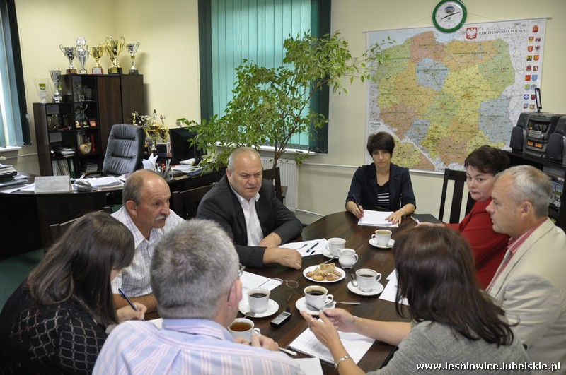 W dniu 26 sierpnia 2014 r. w Urzędzie Gminy Leśniowice odbyła się narada dyrektorów szkół podstawowych i gimnazjum zorganizowana przez Panią Agnieszkę Raczyńską Prezes Leśniowskiego Stowarzyszenia Oświatowo – Samorządowego i Pana Wiesława Radzięciaka Wójta Gminy Leśniowice. Podczas spotkania omówiono przygotowanie szkół do rozpoczęcia roku szkolnego 2014/2015, zapoznano z aneksami arkuszy organizacyjnych na rok 2014/2015, a następnie dyrektorzy szkół podstawowych oraz gimnazjum przedstawili informację na temat zbieranych wniosków na „Wyprawkę szkolną” na rok szkolny 2014/2015 oraz zapoznani z ofertami polis ubezpieczeniowych. Omówiono
