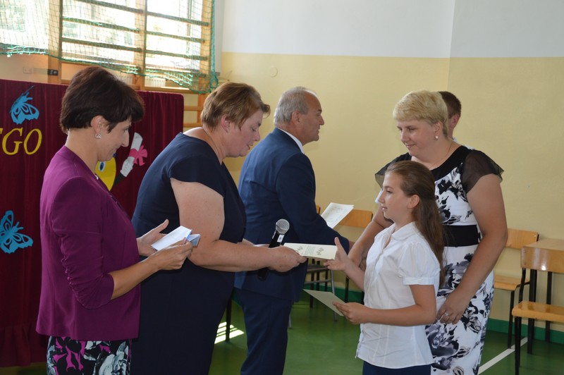 pod okiem Pani Ewy Nafalskiej Zalewa i Pani Barbary Hulkiewicz. W dalszej części uroczystości Prezes Leśniowskiego Stowarzyszenia, Wójt Gminy wraz z dyrektorami szkół wręczyli stypendia naukowe i sportowe uczniom, którzy uzyskali najlepsze wyniki w nauce i sporcie oraz listy gratulacyjne ich rodzicom. Stypendia naukowe otrzymali uczniowie: 1)