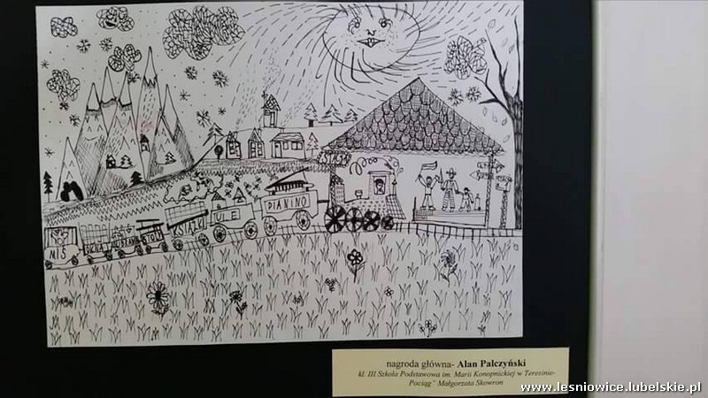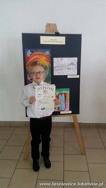 Alan Palczyński, uczeń klasy III Szkoły Podstawowej w Teresinie, zdobył II miejsce w IX Ogólnopolskim Konkursie Plastycznym „Malowane poezją”. Wykonał grafikę do wiersza „Pociąg” Małgorzaty Skowron. W konkursie wzięło udział ogółem 1650 uczniów z całej Polski. Rozdanie nagród i dyplomów odbyło się 11 maja 2016 roku w Aleksandrowie. To już kolejny sukces plastyczny ucznia. Drugim sukcesem jest zakwalifikowanie jego pracy do wystawy w XII Ogólnopolskim Konkursie Plastycznym „Piękno i brzydota w szarości” Rawicz 2016. Na konkurs wpłynęło 3419 prac. Wręczenie nagród i wystawa odbędzie się pod koniec maja. Chłopiec rozwija swoje zdolności plastyczne pod okiem wychowawczyni Agnieszki Grabowskiej. Alanowi gratulujemy i życzymy dalszych sukcesów.