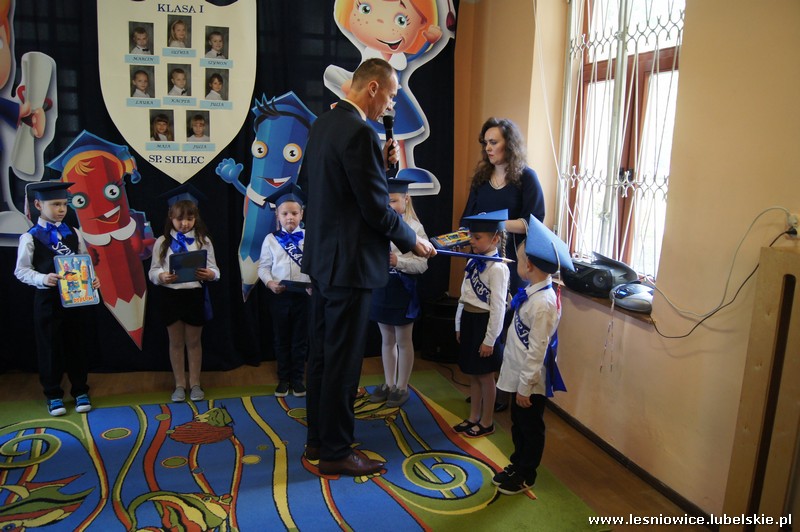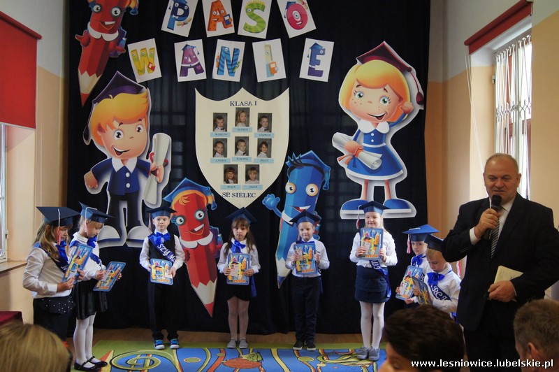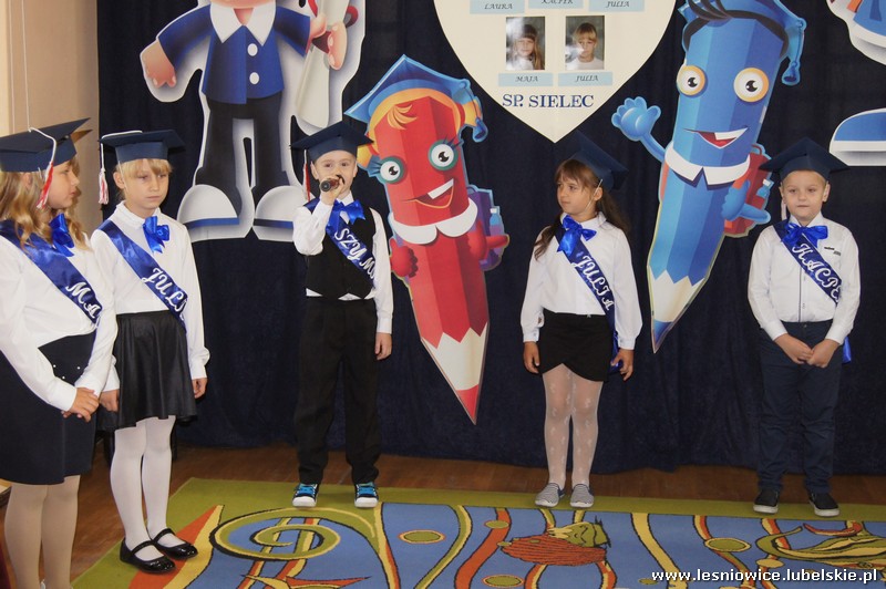 W dniu 11 października 2018 r. w Szkole Podstawowej w Sielcu odbyło się ślubowanie klasy pierwszej i pasowanie na ucznia. W uroczystościach udział wzięli: Pan Wiesław Radzięciak Wójt Gminy Leśniowice, Pan Stefan Prokop Przewodniczący Rady Gminy Leśniowice, Pani Agnieszka Raczyńska Prezes Leśniowskiego Stowarzyszenia Oświatowo-Samorządowego, Pan Piotr Janiuk Dyrektor Szkoły Podstawowej w Sielecu, nauczyciele, rodzice oraz uczniowie szkoły. Uroczystość rozpoczęła się częścią artystyczną w wykonaniu dzieci z klasy pierwszej, którą przygotowały pod opieką wychowawczyni Pani Alicji Sędłak. Następnie pierwszaki złożyły uroczyste ślubowanie, przyrzekając sumiennie wykonywać swoje obowiązki i dbać o dobre imię szkoły. Po ślubowaniu głos zabrał dyrektor szkoły, który z okazji uroczystego przyjęcia w poczet uczniów Szkoły Podstawowej w Sielcu złożył pierwszoklasistom życzenia, aby pobyt w szkole był najpiękniejszą przygodą pełną samych najlepszych ocen i wzorowego zachowania. Następnie głos zabrała Pan Wiesław Radzięciak, który życzył uczniom samych bardzo dobrych ocen i oby obowiązek chodzenia do szkoły spełniany był z przyjemnością. W dalszej części spotkania Wójt wraz Panią Agnieszka Raczyńską i Panem Stefanem Prokopem wręczyli pierwszoklasistom drobne upominki. Prezenty wręczyła również Przewodnicząca Rady Rodziców Pani Jolanta Harmata oraz uczniowie klas starszych. Tegorocznymi pierwszoklasistami Szkoły Podstawowej w Sielcu zostali: Wszystkim pierwszoklasistom składamy serdeczne życzenia pomyślności i satysfakcji w zdobywaniu wiedzy, a czas, który spędzą w szkole był miły i radosny oraz owocny w wiedzę.