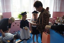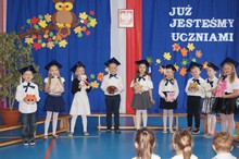 Agnieszka Raczyńska wręczyła pierwszoklasistom drobne upominki. Wszystkim pierwszoklasistom składamy serdeczne życzenia pomyślności i satysfakcji w zdobywaniu wiedzy, a czas, który spędzą w szkole był miły i radosny oraz owocny w wiedzę.